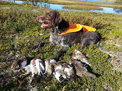 It was a good year to hunt ptarmigan - but warm days and heavy work for "Atle" - my tracker!